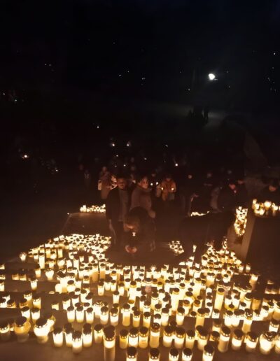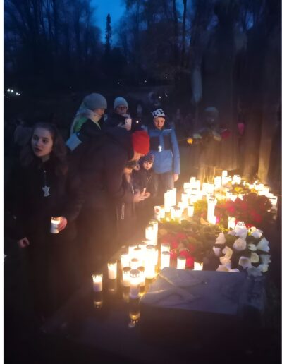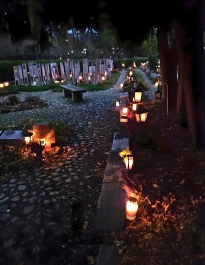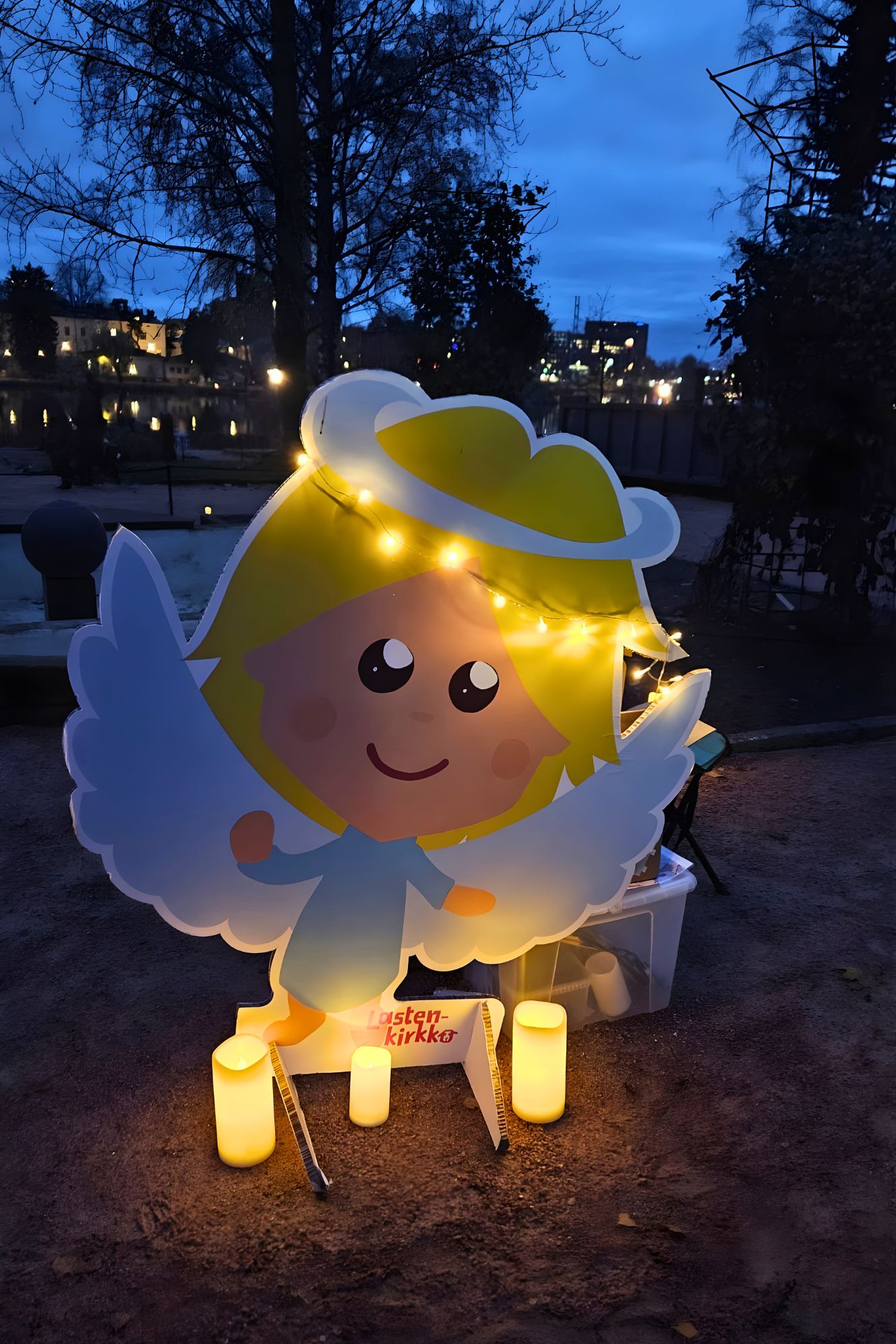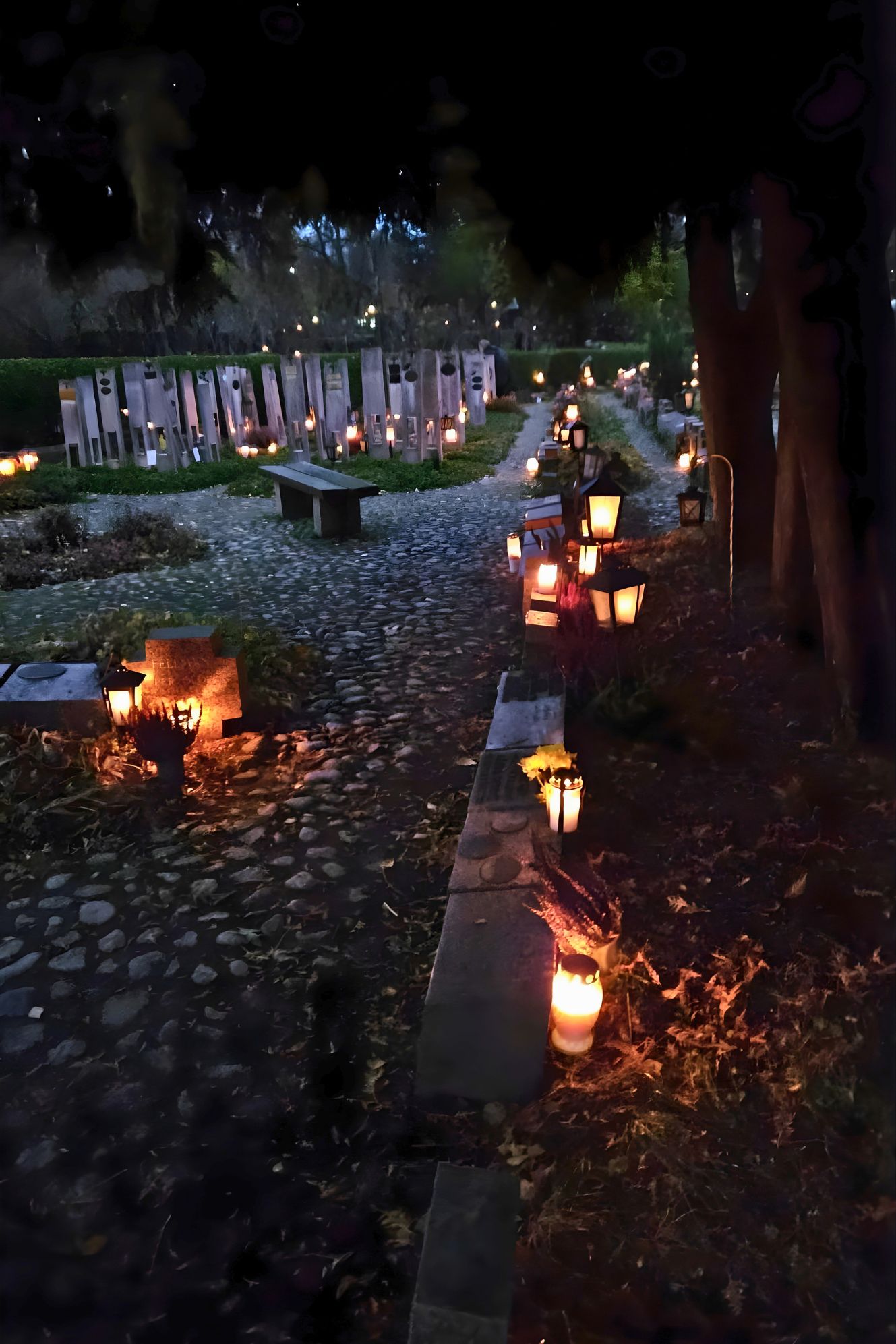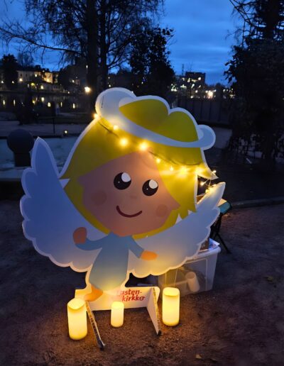 November 1-jén a Hietaniemen temetőt kerestük fel együtt. Természetesen vittünk magunkkal mécsest, de a temetőt gondozó Helsinki Lutheránus Egyház programokról is gondoskodott a gyerekek számára. Így az alkonyati órákban zseblámpa fényénél kellett megkeresni a hatalmas fenyőfákra aggatott fényvisszaverőket. Aki ügyesen megszámolta a fán lógó díszeket, jutalmat kapott: egy angyalka alakú fényvisszaverőt, melyen kereszt is van. Kedves, diszkrét, de egyértelmű jelentést hordozó szimbólum, ami azonnal rá is került a gyerekek zipzárjára. Mire a játék véget ért, ránk sötétedett, így láthatóvá vált az elhunyt szeretteink emlékére gyújtott mécsesek fénye. Sokezer mécses fénye lobogott a helsinki éjszakában. A temetőlátogatás után átmentünk a Szűz Mária-templomba, hogy az ünneplést szentmisén való részvétellel tegyük teljessé, elhunytainkat és saját magunkat is az Oltáriszentségben jelenlévő Üdvözítőnek ajánlva.